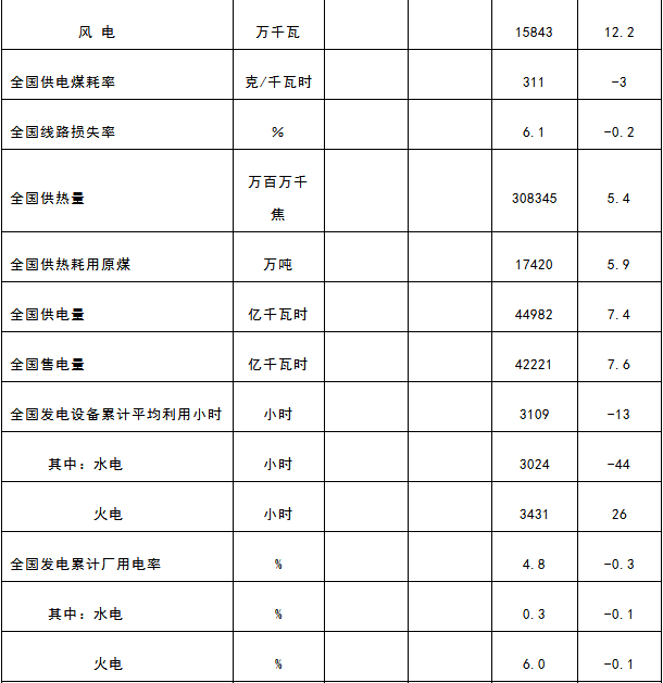 全國電力工業(yè)統(tǒng)計數(shù)據(jù)一覽表