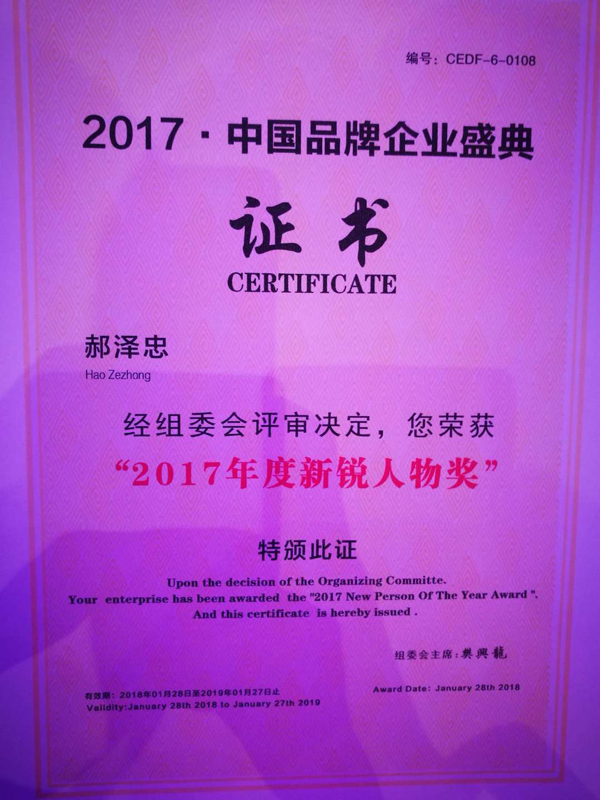 ? ? ? ?在此次盛典上,中科宇杰董事長(zhǎng)郝澤忠先生作為一個(gè)走在技術(shù)創(chuàng)新的前列的大型現(xiàn)代化企業(yè)的奠基者和管理者,憑借自己的行業(yè)實(shí)力,從國(guó)內(nèi)眾多候選企業(yè)家中脫穎而出,被組委會(huì)授予“2017年度新銳人物獎(jiǎng)”。