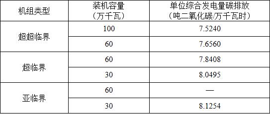 燃煤電廠各機組標桿值的選取標準為:超超臨界以及60萬千瓦超臨界機組參考《煤電節(jié)能減排升級與改造行動計劃(2014-2020)》(發(fā)改能源〔2014〕2093號)中的先進值,30萬千瓦超臨界及亞臨界機組采用本省納入企業(yè)同類型機組現役最先進值(具體數值見附件1-2);采用天然氣、煤矸石等其他燃料的發(fā)電企業(yè),其標桿值等于企業(yè)基準年間單位綜合發(fā)電量碳排放量的加權平均值,每年碳強度的權重為當年綜合發(fā)電量占三年綜合發(fā)電總量的比例。