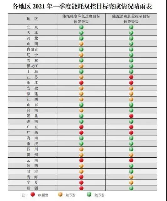 為貫徹落實(shí)黨中央、國務(wù)院關(guān)于強(qiáng)化能源消費(fèi)總量和強(qiáng)度雙控的決策部署,加強(qiáng)能耗雙控形勢分析預(yù)警,國家發(fā)展改革研究提出了《各地區(qū)2021年一季度能耗雙控目標(biāo)完成情況晴雨表》。