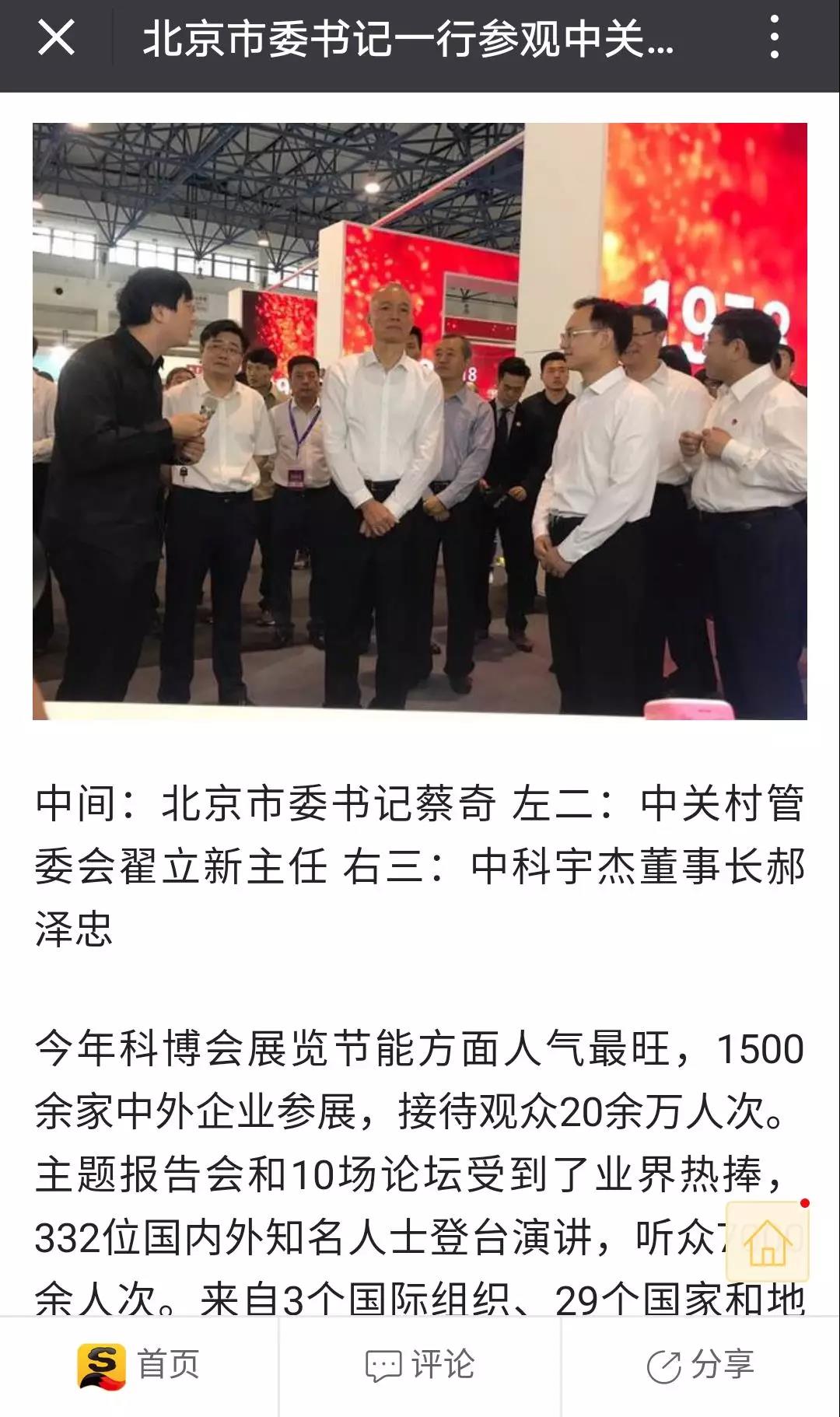 厲害了!中科節(jié)電技術在科博會上備受北京領導關注,引搜狐新聞報道!