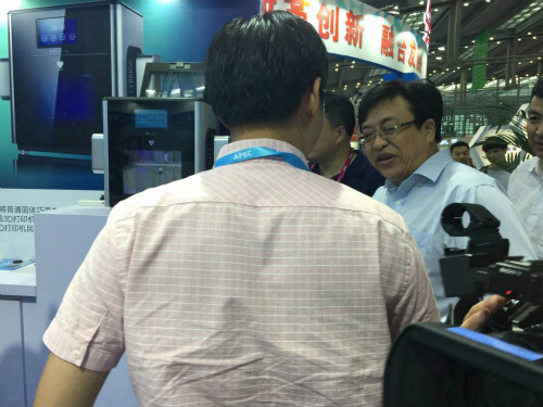 ▲北京市經(jīng)信委中小企業(yè)管理處處長李巍先生視察中科宇杰展位