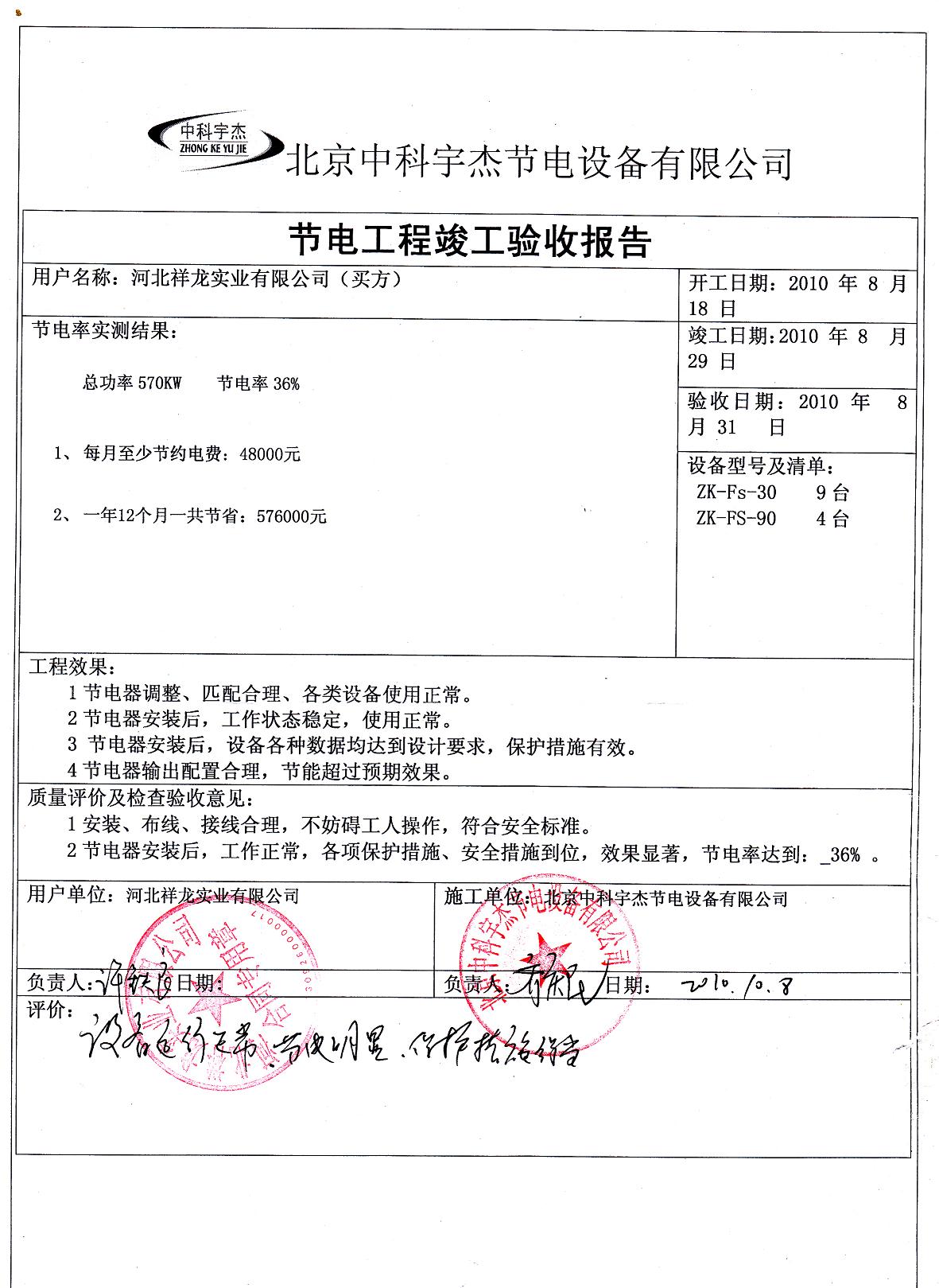 河北祥龍實(shí)業(yè)有限公司節(jié)能項(xiàng)目