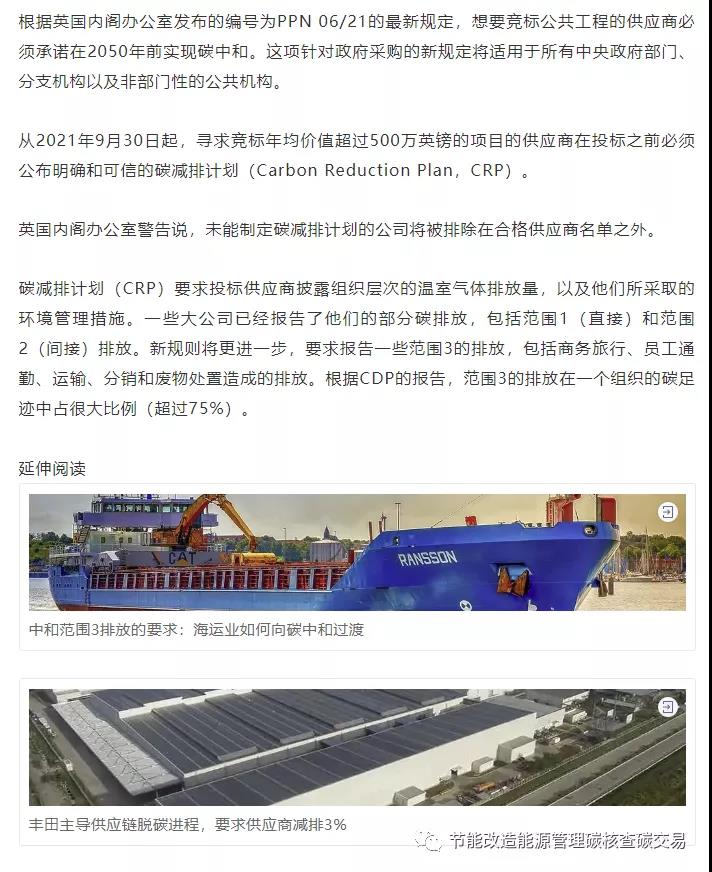 UK新規(guī):企業(yè)不承諾碳中和目標(biāo)將無(wú)法參與政府采購(gòu)項(xiàng)目